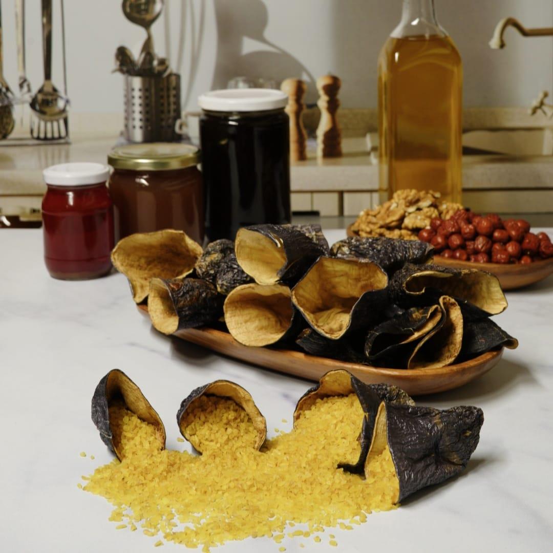 DOGAL YÖNTEMLERLE PATLICANIN UÇ KISMINDAN  GÜNEŞTE KURUTULMUŞTUR DİZİDE ORTALAMA 40 İLE 45 ADET ARASINDA ÇIKMAKTADIR