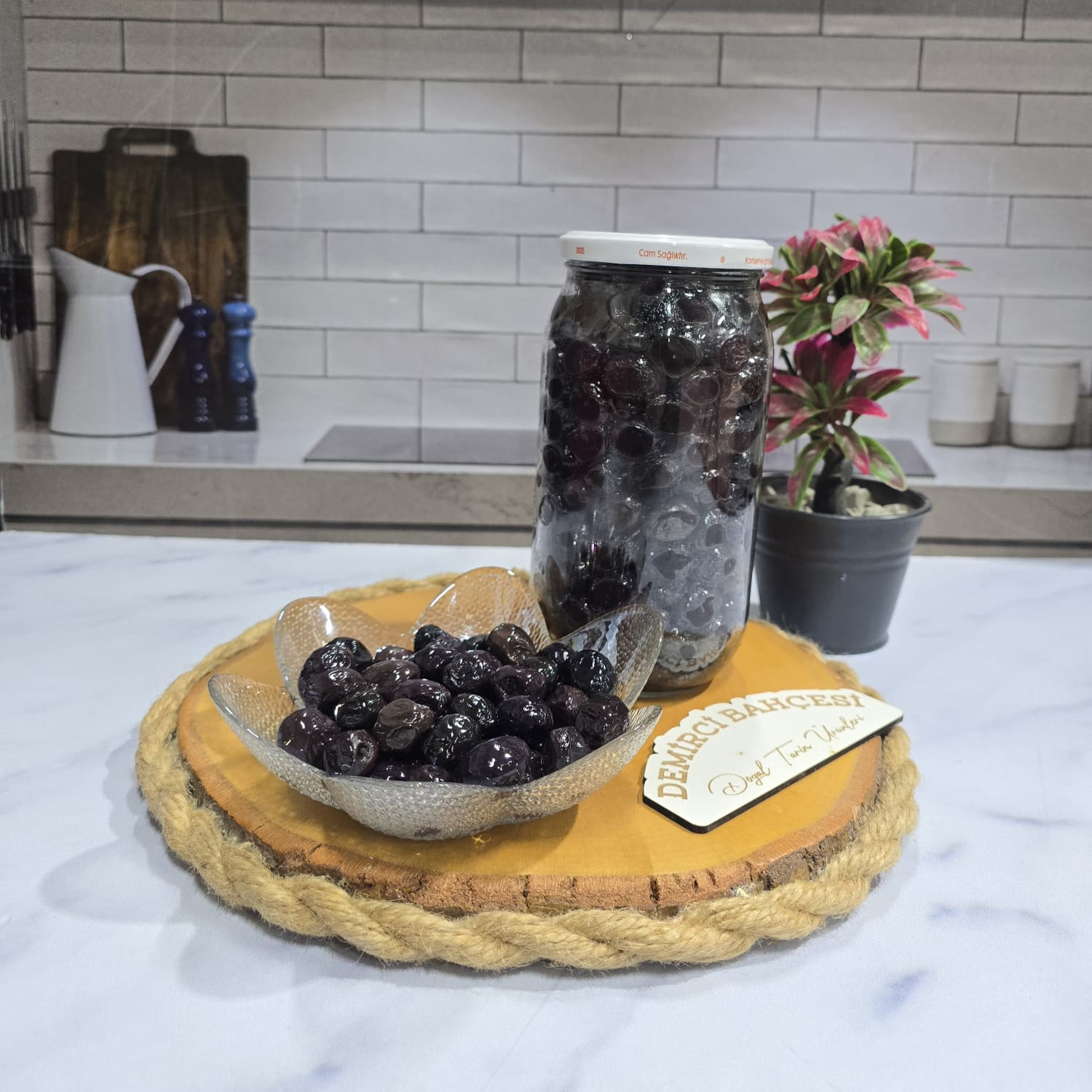 1 KG CAM KAVONOZ İÇERSİNDE 700 GR SİYAH ZEYTİN BULUNMAKTADIR